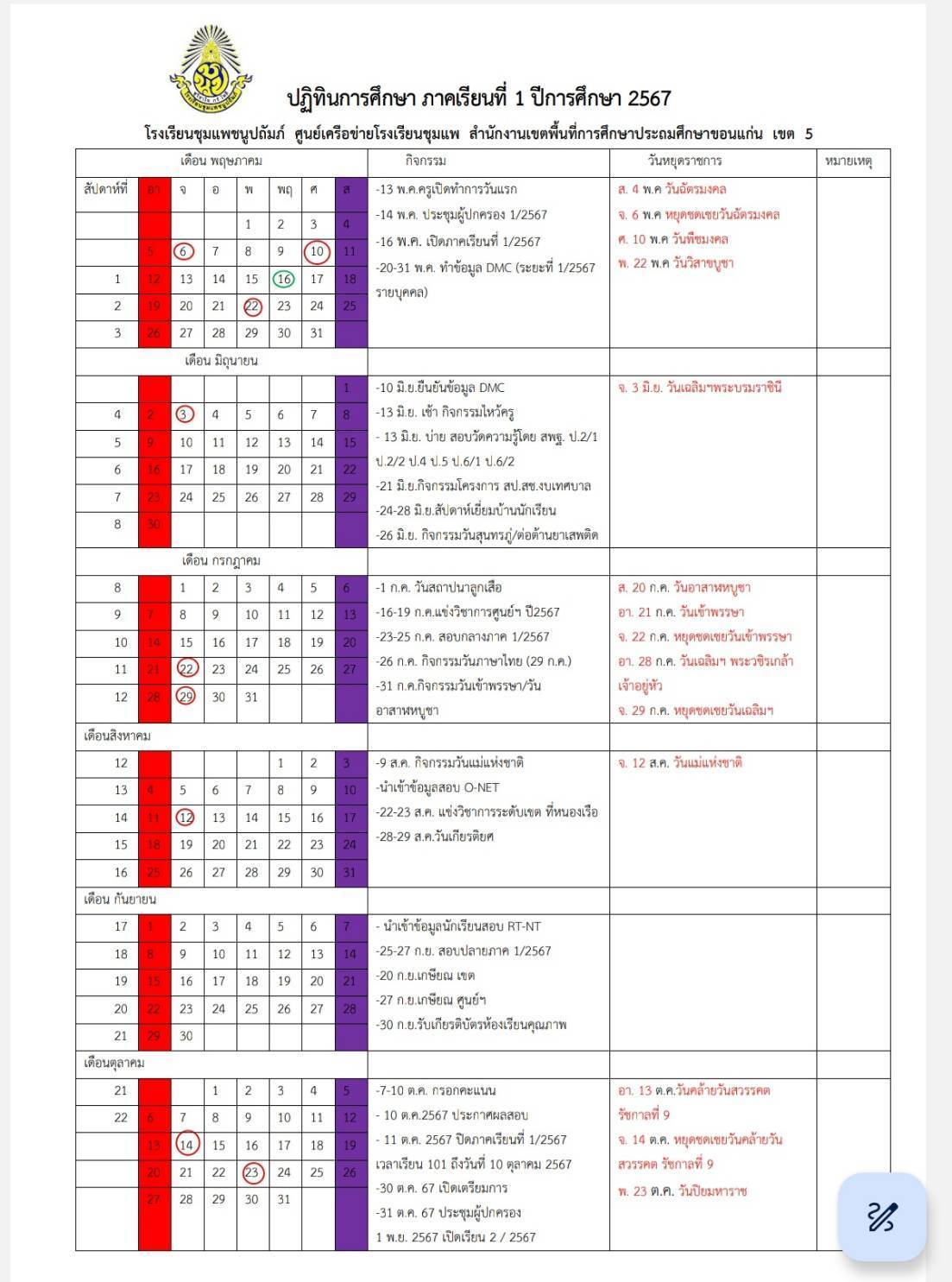 ปฏิทินกิจกรรม